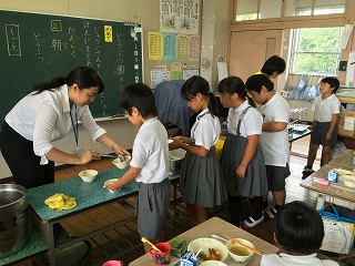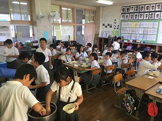 【4年1組;給食の様子】 ・量を増やしたり、減らしたり、自分に合う分量に調整していました。 |
