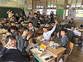 【3年B班;ALTのジョー先生と一緒に食べました】 |