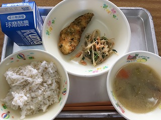 | ☆11月24日(金) 《献立》 ★和食を味わう献立の日 ・赤飯、煮しめ、すまし汁、えびフライ、牛乳 《献立ひとくちメモ》 ・今日は、「和食を味わうの日・ふるさと元気っ子メニュー」です。「ふるさと元気っこメニュー」では、毎月19日の「食育の日」に合わせて、八代地域や県内でとれる食材を使った料理や伝統料理、郷土料理などを実施しています。食事を通して、ふるさとを愛する心を育てたいと考えています。また、今日は11月24日の「和食の日」にあわせて、和食を味わう献立の日の取組も同時に行います。九州三大祭りの一つのである妙見祭が11月23日に開催されたことから、お祭りやお祝いの時に作られる赤飯と煮しめの給食を実施します。お祭りにちなんだ「妙見お祭りメニュー」です。 |