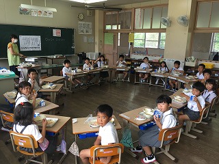 | ☆6月4日(月) 《献立》 ・ミルクパン、ポークビーンズ、菜果サラダ、いりこスナック、牛乳 《献立ひとくちメモ》 ・かむ時には、あごの筋肉を動かします。このあごの筋肉を動かすたびに、まわりの血管や神経が刺激されて、脳の血流もよくなり、脳に酸素が届きやすくなります。そうすることで、脳の働きが活発になり、記憶力や集中力がよくなるといわれています。 【1年2組の様子】 ・グループを作って給食を食べていました。 |