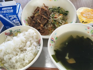 | ☆6月22日金曜日 《献立》 ★中体連応援メニュー ・スタミナ丼、わかめスープ、野菜のナムル、デザート、牛乳 《献立ひとくちメモ》 ・今日は中体連応援メニューです。スタミナ丼の豚肉には、ごはんなどの糖質をエネルギーに変えるときに必要なビタミンB1が多く含まれています。ごはんと一緒に豚肉を食べることで、エネルギーをたくさん作り出すことができます。また、にらには、ビタミンB1の吸収を助ける働きがあるため、豚肉とあわせて食べると疲れを回復させてくれる効果が期待できます。 【3年1組の様子】 ・給食の準備をしています。 |