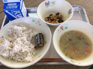 | ☆10月18日木曜日 《献立》 ・麦ごはん、豚汁、さんまの塩焼き、ざぜん豆、牛乳 《献立ひとくちメモ》 ・さんまの旬は10月で、産卵前の秋は、最も脂がのり、美味しい時期です。さんまは、漢字で「秋の刀の魚」と書き、秋の味覚の代表格です。ビタミンDが多く含まれ、骨や歯を丈夫にするのを助けてくれます。また、さんまには、血液の流れを良くするエイコサペンタエン酸やドコサヘキサエン酸が豊富に含まれていて、頭の回転を良くし、記憶力を高めてくれる効果があります。 【6年1組の給食の様子】 ・「いただきます!」のあと、多くの子どもたちが豚汁を増やしに行きました。 |
