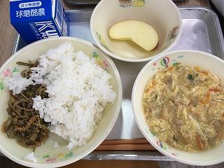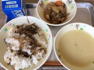 ・麦ごはん、くりーみー呉汁、手作り佃煮、大根のそぼろ煮、牛乳
