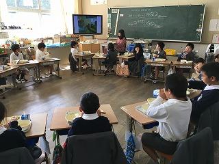 麦島給食センターの宮本先生が来校され、毎日の給食がどのようにできるか話してくださいました。