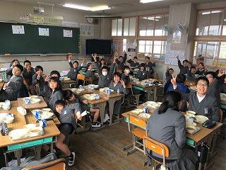 40人以上でいっしょに食べる給食は、にぎやかで、おいしいです。