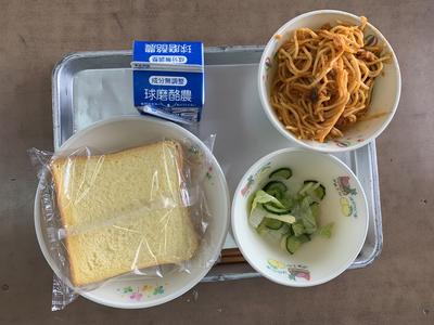 ミルクパン、フレンチサラダ、スパゲティー、牛乳(673kcal)