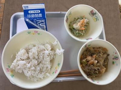 今日は、大根、にんじん、きゅうりを使った三色なますです。酢の物は苦手な人も多いようですが、食べやすいように甘めに仕上げてありますので、頑張って食べてくださいね。