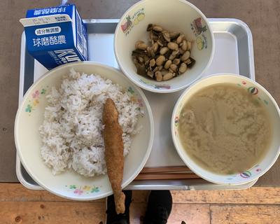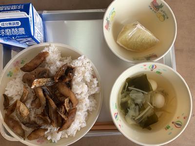 麦ごはん、ししゃもフライ、ざぜん豆、さつま汁、牛乳