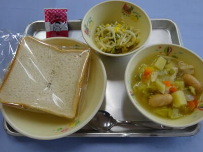 食パン、大根サラダ、ポトフ、大豆チョコ、牛乳(638kcal)