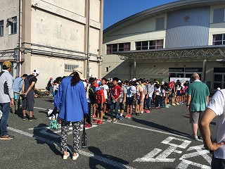 | ☆8月14日(月) ○ふるさと祭りは運動場?体育館? 【午前7時の話し合い】 ・天候が悪くなる予報のため、午後4時に集合し、準備をすることになりました。 ・運動場で行うか、体育館で行うか態度決定をして、準備をします。 |