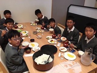 | ☆11月2日(木) ○6年生修学旅行、2日目の朝の様子です ・担任廣岡先生からのメールより 「みんな朝から完食(^^)40人全員元気です。8時に出発します。グラバー園に行ってきます!」 ★ホテルにて(朝食) 【楽しそうな朝食の様子です】 【食べた後のマナーもバッチリです】 ★修学旅行2日目は、グラバー園、大浦天主堂、出島資料館、佐賀宇宙科学館へ行きます。植柳小到着は、18時00分予定です。 |