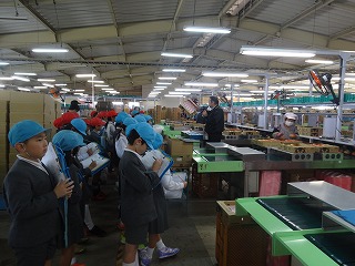| ☆平成30年11月5日(月) 〇社会科見学旅行に行きました(3年生) ・社会科の学習で、八代市内の様々な施設へ見学をしに行きました。 【午前7時30分;出発式】 ・校長先生のお話がありました。「あいさつをしましょう。話をしっかり聞きましょう。どんどん質問しましょう。」と、社会科見学で頑張ってきてほしいことを話されました。 【午前7時40分;3年生出発!】 ・3年生みんな一緒に1台の大型バスで出発しました。 ★①青果市場7:50~8:50★ ※すみません。写真はありません。 ★②JA八代南部総合支所9:15~10:15★ 【選果場の中】 ・トマトの選別や箱詰めなどをされていました。 【JAの方のお話】 ・選果場の工夫や八代の農作物、出荷先などお話をしていただきました。 ★③ちくわ工場(岩崎水産)10:40~11:55★ 【ちくわ工場の機械】 ・白いすり身が、おいしそうな色になっていく様子を見学しました。 【質問コーナー】 ・ちくわ工場について話を聞いた後、質問をしました。 【ちくわを頂きました】 ・岩崎水産さんから、全員にちくわ1本を頂きました。焼きたてほかほかで、とっても美味しかったです。岩崎水産さん、ありがとうございました。 ★⑤日奈久温泉神社12:00~13:00★ 【たくさんの階段の上りました】 【山の上の神社へ】 【お楽しみのお弁当タイム】 【段差があっていろんな場所で昼食】 【記念写真;3年1組】 【記念写真;3年2組】 ★⑥イオン八代13:30~14:50★ 【売り場の説明】 ・いろいろな工夫を教えてもらいました。 【バックヤードの見学】 ・お店の裏側に侵入。ドキドキ、何があるのかな。 【質問タイム】 ・「お店には一日何人くらいのお客さんが来るのですか?」など、たくさん質問しました。 【お買い物タイム①】 ・お小遣いは500円。おうちの人から頼まれた物を一つ買いました。 【お買い物タイム②】 ・残ったお金で、自分が買いたい物を買いました。 【レジで支払い】 ・お店の人がやさしく対応してくださいました。 【セルフレジでお買い物】 ・セルフレジを使って、自分で支払いをする子供たちもたくさんいました。 【フレッシュみずもとさんから】 ・八代青果市場では、地元のスーパー「フレッシュみずもと」さんがいらして、子どもたちへたくさんのお土産をくださいました。 ・りんご、バナナ、みかんを頂きました。ありがとうございました。 ★「フレッシュみずもと」の水本様、「ちくわ工場」の岩崎水産様、JAやイオンの皆様、九州産交の運転手様には大変お世話になりました。見学したことを社会科の勉強に生かしていきます。本当にありがとうございました。 〇植柳小あれこれカメラ 【いずかしボランティア】 ・朝の休み時間、いずかしの森周辺をきれいにしました。 【明日が本番】 ・5年生のブロック別球技大会は、明日が本番です。自分たちのベストを尽くしてがんばります! 【お弁当の日】 ・天気が良く、1年生は「いずかしの森」でお弁当を食べました。初めてで、ちょっとワクワクドキドキ。楽しく食べられたかな? |