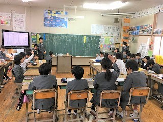 | ☆平成30年12月10日月曜日 〇ジョギングタイムが始まりました ・来年1月17日(木)が、植柳小学校の持久走大会です。それに向けて、全校一斉に10分間のジョギングをしました。 【昼休みの運動場】 ・運動の線の内側を1~3年生が、外側を4~6年生走ります。BGMは「U.S.A.」でした。 【10分間のジョギングタイム】 ・みんなで走ると、なぜか楽しく走れます。寒さに負けない身体と心が育ちますね。 〇クリーン作戦に取り組みました ・八代手をつなぐ育成会の活動の一環として、毎年12月にクリーン作戦を行っています。今年度も、あすなろ学級の子供たちが、河川敷のごみ拾いを行いました。 【球磨川河川敷の歩道】 ・あすなろ学級16名の子供たちと職員6名で活動しました。 【ごみがたくさん集まりました】 ・お菓子の包装紙やペットボトル、割れたビンなど、いろいろ落ちていました。持久走大会のコースにもなる歩道ですが、あすなろ学級の子供たちのおかげで、きれいになりました。 〇代表委員会がありました ・「2018年最後の全校の思い出をつくろう」の議題で、代表委員会の話し合いをしました。 【6年1組教室】 ・「思い出=みんなで遊べる遊びやイベント」について、話し合いました。「鬼ごっこ」「大縄跳び」「じゃんけん列車」など、みんなで遊べる意見があがっていました。決定事項は、後日お知らせします。 |