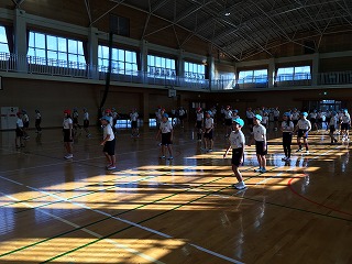 | ☆平成30年12月12日水曜日 〇リズムビクスがありました ・これまで「スポーツ教室」と呼んでいましたが、「リズムビクス」として運動をしました。 【低学年;リズムビクスの様子】 ・リズムビクスとは、「ストレッチや筋トレ、有酸素運動を行うエクササイズ」です。園田先生が指導して下さいました。 ・速いテンポの動きでも、みんなノリノリで踊れていました。 【高学年;リズムビクスの様子】 ・低学年に比べて、動きが多い運動をしました。毎年しているので、みんな上手に踊れました。 |