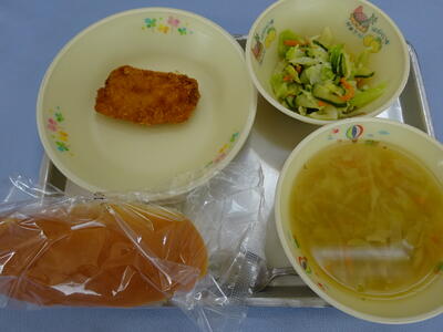 ミルクパン、白身魚フライ、ポテトのスープ、コールスローサラダ、牛乳(568kcal)