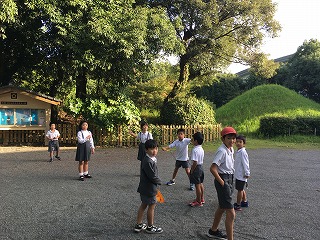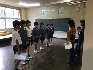| ☆10月24日(火) ○田んぼに案山子をたてました ・今日も田んぼの話題です。もうすぐ稲刈りですが、かかしが完成しました。 【パーカーを着た現代風のかかしです】 ・骨組みは用務の白石先生が作り、服や表情は5年生が担当しました。 【ありがとうございました】 【5年生全員で記念写真をパチリ!】 ○植柳小あれこれカメラ 【4年生理科;アルコールランプの使い方】 ・みんな恐る恐るマッチをすり、ランプをつけていました。 【昼休み;宝暦萩原堤の練習風景】 ・お殿様やお侍さんなど、偉い身分の人たちの動きの練習でした。 |