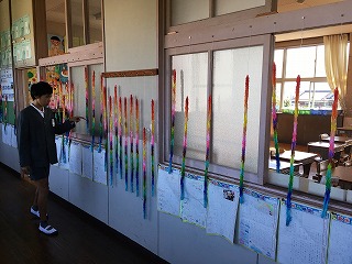 | ☆10月23日(月) ○人権同和教育研究会がありました ・麦島小と三中で、人権同和教育の研究授業がありました。 ・三中、五中、六中校区の小中学校が参加し、研修を深めました。 【三中2年2組;「差別の歴史」の授業の様子】 ○稲が大きくなりました ・5年生が総合的な学習で育てているお米です。 【今年はスズメの被害も少ないようです】 ・キラキラテープの効果です。 【たくさんの実がついています】 ○植柳小あれこれカメラ 【南門の横断歩道 7:54;一週間の始まりです!】 【運動場 7:56;サッカーも久しぶり!】 【職員玄関前 8:07;楽しそうに遊ぶ子供たち】 【いずかしの森 9:40;久しぶりの晴天でした】 |