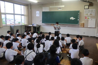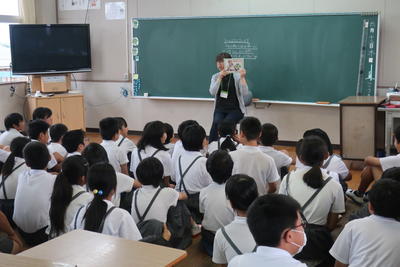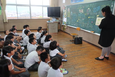 6年生では「あめふり」と「はじめてのおつかい」の2冊を読んでいただきました。高学年になるとなかなか読み聞かせの機会がなくなってしまうので、目を輝かせながら聞いていました。