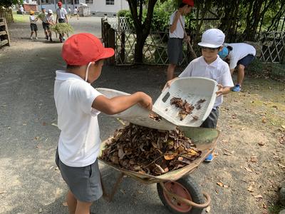 ◯今日は昼休みに草取りや落ち葉掃きのボランティアがありました。縦割り班での活動となりました。