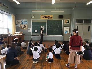 | ☆平成30年11月7日(水) 〇いきいきサロンへ行きました(1年生) ・生活科の学習で、植柳上町公民館へ行き、地域の方々と交流を深めました。 【児童玄関前;教頭先生のお話】 【くまモン体操を踊る1年生】 ・くまモン体操、けん玉、まつぼっくりけん玉、どんぐりごま、どんぐり迷路、どんぐりやじろべえを、グループごとに発表しました。 【まつぼっくりけん玉】 ・紙コップとまつぼっくりで作りました。うまく入ったかな? 【どんぐりやじろうべえ】 ・唇の上にのせて、ゆーらゆら…。バランスよく乗っていますね。 【交流遊び】 ・手作りおもちゃで、地域の方と一緒に遊びました。 【感想発表】 ・交流会をして、思ったことを発表しました。 ★上町のおじいちゃん、おばあちゃん、ありがとうございました。楽しく交流ができました。これからもよろしくお願いします。 〇いずかし給食(5年1組と2年1組) ・3回目のいずかし給食がありました。 【今日もいい天気でした】 【5年1組と2年1組の子供たち】 【旧講堂といずかしの森】 ・年に1回の交流給食ですが、子供たちは昨年のことをよく覚えていて、「先生、去年は寒くて、スープが冷たくなったんですよ。」と話してくれました。 ・心に残る素敵な給食が、今年もできてよかったです。 |
