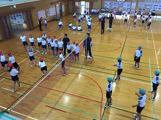 | ☆平成30年11月6日(火) 〇ブロック別球球技大会がありました(5年生) ・植柳小と麦島小の体育館で、5年生の球技大会がありました。 ・植柳小55名2クラス、麦島小73名2クラス、高田小75名2クラス、八竜小13名1クラス、全部で32チームを作り、ソフトバレーボールの対戦をしました。 【5年2組の出発式】 ・5年2組は、麦島小へ行って試合をしました。校長先生の激励を受け、出発しました。 【植柳小体育館;試合についての話】 ・植柳会場には、麦島小、高田小、八竜小、植柳小5年2組が参加しました。 【試合開始!】 ・全部で17チーム。予選リーグで2試合、順位決定リーグで2試合、計4試合をしました。 【試合の様子】 ・ルールは、3~5回での返球となっていて、たくさんの友達がボールを触れるようになっていました。 【植柳小5年1組】 ・試合に勝って、みんなで大喜びでした。 【5年1組の黒板】 ・子供たちの意気込みが、教室の黒板に書かれていました。「仲間と勝利をつかみとろう」「みんなで楽しもう!」「ちがう小学校の子どもと仲良くなろう!」など、お互いの交流を深めあおうと思う気持ちが素敵でした。 〇いずかし給食がありました(1年生と6年生) ・2回目のいずかし給食がありました。1年生は、昨日のお弁当の日に、予行練習をしていたので、スムーズな会食ができたようでした。 【いずかしの森にて】 ・毎日天気が良く、1年生は暑さ対策に、黄色い帽子をかぶりました。 【6年生と1年生】 ・どんなお話をしたのかな? 【いずかし給食の様子】 ・準備は大変ですが、心に残る会食ができました。自然豊かな植柳小だからできる特別な給食でした。 |