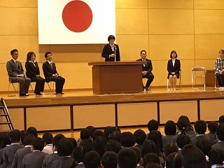 | ☆4月10日(月) ○就任式がありました ・新しく7名の先生が植柳小学校へ来られました。よろしくお願いします。 【就任式;就任された先生の話】 ○始業式もありました ・1学期の始業式がありました。転入生3名の紹介もあり、児童数265名、職員数26名でこれから頑張っていきます。 【始業式;校長先生の話】 ・「うやなぎの鐘をならそう」「イソップ童話の『レンガ職人』」の話がありました。 ○学級開き ・ほぼ新しい担任の先生となりました。心を新たに素晴らしい学級、学校をつくっていきましょう。 【3年生の学級開きの様子】 ○平成29年度の植柳小の教室配置と担任 ・新しい教室の場所です。 ・担任の先生です。 1年1組(上原禎子先生)、2組(千原留美子先生) 2年1組(稲岡富美子先生)、2組(村上暁子先生) 3年(菅村泰祐先生) 4年1組(金井陛一先生)、2組(西村友莉那先生) 5年(樋口佳菜先生) 6年(廣岡晃久先生) あすなろ1組(森川隆一先生) あすなろ2組(百田直美先生、續安男先生、桑田優子先生) あすなろ3組(吉田直子先生) ★どうぞ、よろしくお願いします。 |