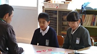 | ☆3月1日(水) ○昔遊び交流会がありました(1年生活科) ・植柳上一の「いきいきサロン」の方が、昔遊び(こま回し、お手玉、あやとり、紙飛行機)を教えてくださいました。 【始まりの会;校長先生のあいさつ】 ・上一の方とは2回目の交流会でした。 ★子どもたちは4つの遊びをグループで回り、各10分ずつ楽しみました。 【あやとり】 ・いろいろなあやとりの仕方を教えてもらいました。 【紙飛行機】 ・自分で作って遊べる紙飛行機は、子どもたちには大人気でした。 【こま回し】 ・ひものかけ方、こまの持ち方など、手取り足取り教えてもらいました。 【勢いよく回るこま】 ・「わあ、こまが穴を掘ってる!ドリルみたいだ!」と、大歓声があがっていました。 【お手玉】 ・初めはうまくできなかった子も、ていねいに教えていただき、2個のお手玉で遊べるようになりました。 【遊びの後は、お礼を言って次の遊びへ】 【終わりの会;感想発表】 ・「楽しかったです。」「できるようになりました。」「また遊びを教えてください。」など、たくさんの児童が手を挙げて発表しました。 |