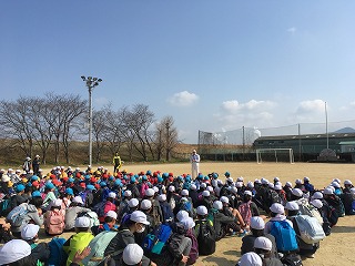 | ☆3月7日(火) ○部活動修了式がありました ・平成28年度の部活動修了式がありました。植柳小には、陸上部、卓球部、バドミントン部、野球部、ミニバスケットボール部、サッカー部の6つがあります。 ・部活動での頑張りを、来年度の活躍につなげてほしいですね。 【修了式;全体会】 ・各部のキャプテンが代表で、校長先生から修了証をいただきました。 【修了式;各部にて…サッカー部】 ・担当の先生から一人一人修了証をもらいました。 |
