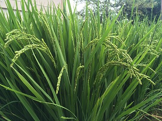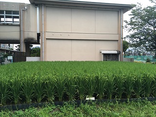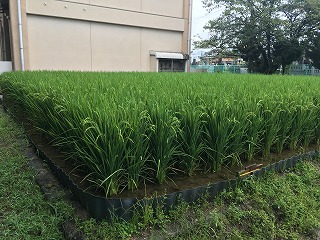 | ☆9月18日(月・祝) ○稲が大きくなりました ・5年生が育てている学校田の稲が大きくなりました。 【80㎝くらいの高さ】 【先日は5年生が草取りをしました】 【実もついてきました】 |