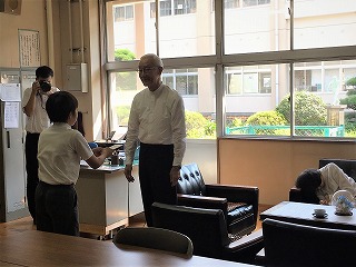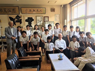 | ☆10月13日(金) ○上野先生、ありがとうございました ・1973年から2年間、本校で教員をされていた上野由紀子さんがご主人と福岡市から来校されました。 【思い出の写真を見せていただきました】 ・上野博雅さん「自分で学ぶ力が身に付く読書で、新しい自分を見つけてください。読書をとおして、人生を楽しんでください。」 【図書充実のため30万円の寄付をいただきました】 ・図書委員長の6年の西田くん「今でも植柳小を思ってくださっていて、上野由紀子さんは、本当に良い先生なんだと感じました。大切に本を読んでもらえるように頑張りたいです。」 【校長室;みんなで記念写真】 ・『上野文庫』として、これから本を購入していきます。上野ご夫妻、たくさんの寄付をありがとうございました。 |