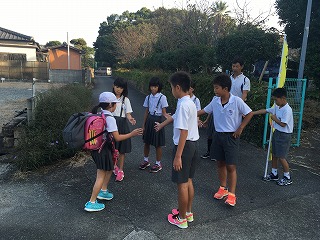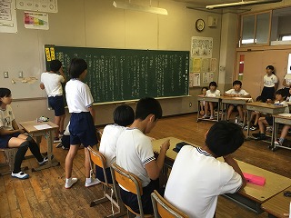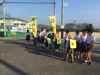 | ☆10月12日(木) ○校内研修で研究授業をしました ・研究テーマ「地域の伝統文化を尊重し、生き生きと表現する児童の育成」を目指して、低・中・高学年で研究授業をしました。 ★2年1組;道徳 「まつりにこめられたねがい」(稲岡教諭) 【妙見祭をもとに授業】 【植柳の盆踊保存会の方のお話】 ★4年1組;理科 「月の動き」(中村教諭) 【月の動きについて各班の考えを述べる児童】 【班の考えをホワイトボードにまとめました】 ★6年;社会科 「戦争と人々の暮らし」(廣岡教諭) 【沖縄戦について考えました】 ○毎週木曜日は「あいさつ運動」の日 ・ハートフル委員会、運営委員会の子供たちが元気にあいさつ運動をしました。 【南門の様子】 【南門前の横断歩道の様子】 【正門横の入り口の様子】 ★ハートフル委員さん、運営委員さん、朝早くから気持ちの良い挨拶をありがとう! |