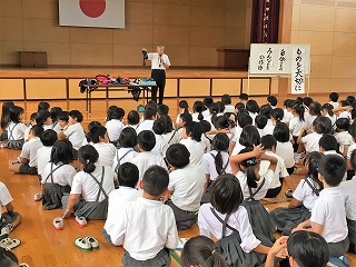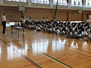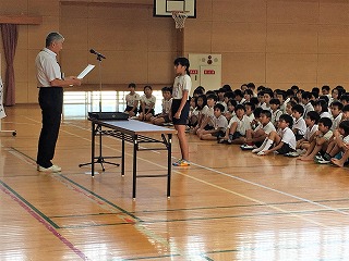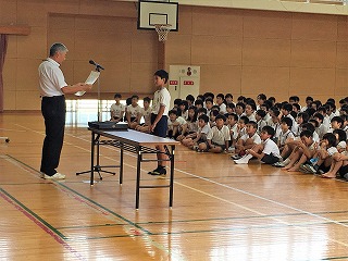 | ☆10月14日(土) ○全校集会がありました(10/13金) 【校長先生の話】 ・「ものを大切に」をテーマに話がありました。 ・学校の落とし物コーナーはいつもたくさんのものであふれています。傘忘れや一輪車の片づけ忘れもあります。 【校長先生の鉛筆削り(50年以上使用)】 ・校長先生が小学校入学祝いに買ってもらった鉛筆削りを、今で大切に使っていることを話されました。 ・「自分のもの」「みんなのもの」を大切にしていきましょう。 ★表彰(八代少年スポーツ大会) 【バドミントン部の表彰】 【卓球部の表彰】 【陸上部の表彰】 ★練習の成果を発揮して、素晴らしい成績をのこすことができました。おめでとうございます。 |