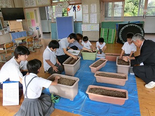 | ☆10月15日(日) ○稲刈りはそろそろかな? ・昨年は、10月18日に稲刈りがありました。天候が悪くて、今年の稲刈りはまだ未定です。 【稲の実が大きく膨らんできました】 【5年生が育てています】 ○第3回フライデーゼミナールがありました ・一昨日金曜日、特別支援学級あすなろ1組で、フライデーゼミナールがありました。 ※「フライデーゼミナール」は、ほぼ毎週金曜日に行う自主的な研究授業です。全員行います。 【生活単元学習;「花や野菜を育てよう」】 【野菜の種や苗を植えました】 ・参観された先生にも手伝ってもらいました。 【しっかり水やり。ベランダで育てます】 ○植柳小あれこれカメラ |