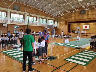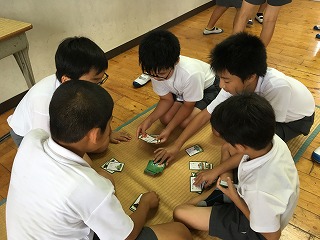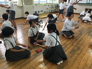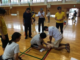 | ☆平成30年6月20日(水) ・校内研修で、①AEDを使った心肺蘇生法、②食物アレルギーに対する対処法、③水泳指導中の緊急対応を行いました。 【体育館;養護教諭の説明】 ・AEDを使った心肺蘇生法の説明がありました。 【心肺蘇生法の実技】 ・3つのグループに分かれ、実技を行いました。 〇伝統文化教室で遊びました(5年生) ・校舎東棟3階に伝統文化教室があります。今日の昼休みは、5年生が昔遊びに親しみました。 【伝統文化教室の様子】 ・お手玉やけん玉、百人一首など、子供たちが自由に遊べる教室です。 【けん玉】 ・真剣にけん玉をしていました。うまく中皿に乗りましたね。 ・みんなで仲良く「坊主めくり」をしていました。 |