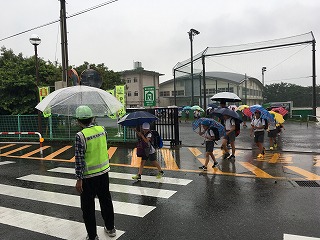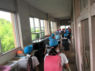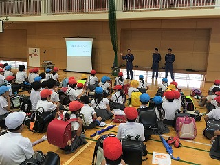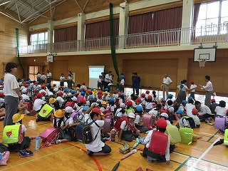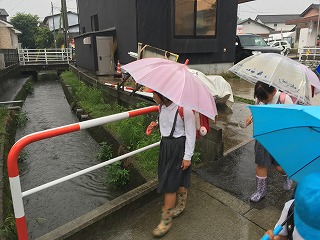 | ☆平成30年6月19日(火) ・5時間目終了後、水害を想定した避難訓練がありました。 【5年生が避難;体育館へ】 ・一斉に体育館へ行くと混雑するので、学年を分けて避難しました。 【体育館;町内児童会ごとに集合】 ・班長が、自分の班の友達を確認。全員そろった班は、無事集合したことを報告しました。 【消防署の方のお話】 ・「水害について」のお話をしていただきました。 【南門】 ・学校から遠い下町の班から下校。SSPの方が見守ってくださいました。 【植柳校区を流れる水路】 ・町内児童会の担当の先生も一緒に歩きました。危険箇所の確認をしながら、安全な下校を指導しました。 〇学年童話発表会がありました(1年生) ・3時間目、1年生の学年童話発表会がありました。 【学級の代表者が発表】 ・6名のお友達が発表しました。 ・幼、保、小連携の一環で、いずみ保育園と植柳幼稚園から、たくさんの園児がお話を聞きに来てくれました。 〇プール開きがありました ・4年生のプール開きが、3校時にありました。 【プール開き】 ・「4年生全員が25m泳げるようにがんばります!」と、代表の児童が今年の抱負を宣言しました。 ・小雨が降る中、やや肌寒かったのですが、子どもたちは元気に水慣れをしました。 【自由練習の時間】 ・今年初めての水泳の授業でしたので、10分間程度の自由練習の時間がありました。子どもたちは、楽しく過ごしていました。 |