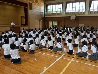 | ☆平成30年6月21日(木) ・植柳小のクラブ活動は9つあります。4年生以上の子供たちが年間12回活動します。 【体育館;クラブ活動発会式の様子】 ・すべてのクラブ活動に、地域の方や専門の方が、先生(ゲストティーチャー)となって指導してくださいます。 ★和太鼓クラブ ★茶道クラブ ★合唱クラブ ★折り紙クラブ ★百人一首クラブ ★将棋クラブ ★手芸クラブ ★パソコンクラブ ★スポーツクラブ 〇グランドピアノの贈呈式がありました ・クラブ活動発会式のあと、閘先生から寄贈いただいたピアノの贈呈式がありました。 【お礼の言葉】 ・6年生の森山君が「寄贈いただいたピアノで練習するのがすごく楽しみです。」と、お礼の言葉を言いました。これから大切に使っていきます。閘先生、ありがとうございました。 〇交通安全教室がありました ・2校時1,2年生が、3校時5,6年生が交通安全教室に参加しました。 〇PTA読み聞かせがありました ・8時30分から50分、各学年でPTAの読み聞かせがありました。お忙しい中、保護者、地域の方が絵本を読んでくださいました。 【1年生】 【2年生】 【3年生】 【5年生】 【6年生】 〇プール開きがありました(2年生) ・待ちに待った2年生、プール開きがありました 【みんなで渦巻き】 ・上がっていた雨もあがり、楽しいプール開きができました。 |