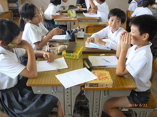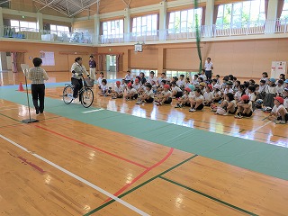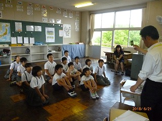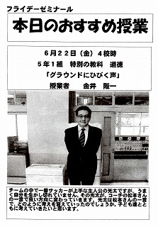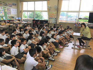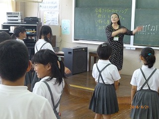 | ☆平成30年6月22日(金) ・子供たちの学力向上と職員の授業力改善のため、フライデーゼミナールを行いました。 【フライデーゼミナールの案内】 ・普段の授業を、参観できる先生が自由に参観し、お互いに学ぶ研修です。 ★松村先生の授業★ 【算数教室】 ・5年1組「小数のわり算」の授業。 【グループでの話し合い】 ・「大きな数ゲーム」必勝法について、話し合いました。 ★金井先生の授業★ 【5年1組教室】 ・道徳「グラウンドにひびく声」の授業。 【自分の考えを発表する児童】 ・自分のよいところについて考える授業でした。 ★事後研究会★ 【事後研究会の様子】 ・放課後、授業について話し合いをしました。 〇交通安全教室がありました(3,4年生) ・安全な自転車の乗り方について学ぶ、交通安全教室がありました。 【体育館;自転車は急に止まれない】 ・ブレーキのかけ方について学びました。 【体育館;自転車のよけ方の練習】 ・自転車は左によけて走行することを学びました。 【運動場;自転車の乗り方指導】 ・停止線でブレーキをかけて止まる練習を、何度もしました。ブレーキの幅が広くて、やっと指が届く人は危ない、と言われました。 【お礼のことば】 ・21日(木)、22日(金)の二日間、交通安全協会と交通指導員の方々に指導していただきました。 ★安全な歩行、安全な自転車の乗り方を行い、「ルールを守る、いのちを守る」ことに、これからも努めていきます。お忙し中、ありがとうございました。 |