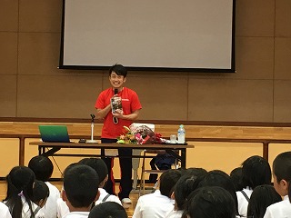 | ☆平成30年6月14日(木) ・2,3校時、体育館で講演会がありました。講師は、元エアロビック競技日本代表の大村詠一さん(演題「1型糖尿病とともに夢に向かって」)でした。 【植柳小体育館】 ・全校児童、学校評議員、保護者、地域の方など、多くの方が参加しました。 【大村さんの実演】 ・日本一のエアロビックの演技を、間近で見ることができました! 【校長先生の話】 【大村さんの講演スタート】 ・座り方や姿勢についての話。こどもたちも実際に動きながら、話を聞きました。 【大村さんの質問に答える児童】 ・ご自身の病気のこと、エアロビックを頑張ってこられたこと、現在取り組んでいる活動のことなど、話されました。 【大村さんが伝えたいこと】 ・大村さんが「伝えたいこと」が3つありました。①多くのヒト・モノ・コトとの出会いの大切さ、②人の心は見えない、③自分の意見を伝える大切さ。 【お礼の言葉】 ・運営委員会の宮嶋くんがお礼の言葉を言いました。自分が思ったこと、感じたことを、感謝の気持ちとともに伝えることができました。 【すばらしい講演会でした】 ・あっという間の1時間でした。大村さんのお話には、たくさんの学びがありました。心を豊かにするとともに、「ぼくたちもがんばるぞ!」という、元気をもらいました。 ・詳しくは、著書『僕はまだ がんばれる-不治の病 1型糖尿病患者、大村詠一の挑戦-』(認定特定非営利活動法人日本IDDMネットワーク、株式会社じゃこめてい出版、定価:1,300円(消費税別))をご覧ください。 ★大村詠一さん、すばらしい実演と講演をありがとうございました。 |