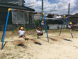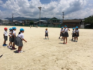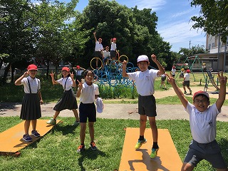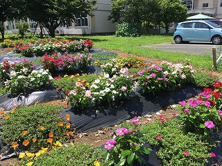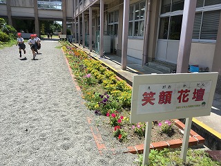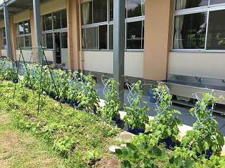 | ☆平成30年6月17日(日) ・梅雨に入りましたが、いい天気の日が多いようです。昼休みの様子です。 【3年生が大縄】 ・自分たちで回して、跳んで、交代して、仲良く遊んでいました。 【5年生がサッカー】 ・天気が良ければ、毎日サッカーです。元気ですね。 【1年生ブランコ】 ・おしゃべりしながら、楽しそうでした。 【5年生】 ・中庭でジャングルジムやジャンプボードで遊んでいました。男の子も女の子も一緒で、仲がいいです。 【職員室横の笑顔花壇】 ・カラフルに咲いています。 【南門入ってすぐの花壇】 ・3年生と4年生の学級花壇です。 【1年教室横のベランダ】 ・生活科で育てている朝顔が育っています。花はまだ咲いていないようでした。 【理科室横の学級農園】 ・あすなろ2組の農園。キュウリやナスが大きく育ていました。 ★明日から、プールでの授業が始まります。水泳セットの準備をよろしくお願いします。 |