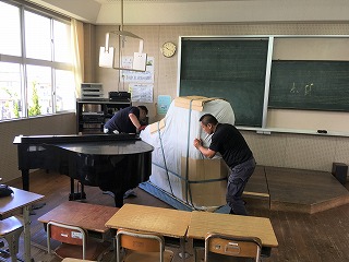 | ☆平成30年6月16日(土) ・閘先生のご自宅で使われていたピアノを寄贈していただきました。 【植柳小の音楽室へ】 ・業者の方が音楽室へ運び入れました。 【左が今まで使っていたピアノ】 ・音楽室のピアノは60年ほど学校で使われていました。修理や調律しても、うまく出ない音がありました。 【閘先生のピアノを設置】 ・慎重に作業。搬入から設置まで1時間ほどかかりました。 【調律してもらいました】 【植柳小の音楽室にようこそ!】 ・音楽の授業や卒業式の練習など、たくさん活躍してくれると思います。早くピアノの♪音色を聞きたいですね。 ★閘先生、これから大事に使っていきます。ありがとうございました。 |