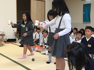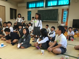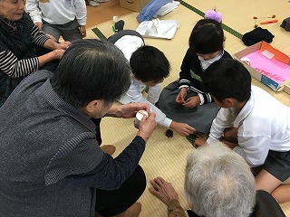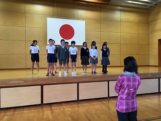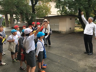 | ☆平成30年11月7日(水) 〇いきいきサロンへ行きました(1年生) ・生活科の学習で、植柳上町公民館へ行き、地域の方々と交流を深めました。 【児童玄関前;教頭先生のお話】 【くまモン体操を踊る1年生】 ・くまモン体操、けん玉、まつぼっくりけん玉、どんぐりごま、どんぐり迷路、どんぐりやじろべえを、グループごとに発表しました。 【まつぼっくりけん玉】 ・紙コップとまつぼっくりで作りました。うまく入ったかな? 【どんぐりやじろうべえ】 ・唇の上にのせて、ゆーらゆら…。バランスよく乗っていますね。 【交流遊び】 ・手作りおもちゃで、地域の方と一緒に遊びました。 【感想発表】 ・交流会をして、思ったことを発表しました。 ★上町のおじいちゃん、おばあちゃん、ありがとうございました。楽しく交流ができました。これからもよろしくお願いします。 〇いずかし給食(5年1組と2年1組) ・3回目のいずかし給食がありました。 【今日もいい天気でした】 【5年1組と2年1組の子供たち】 【旧講堂といずかしの森】 ・年に1回の交流給食ですが、子供たちは昨年のことをよく覚えていて、「先生、去年は寒くて、スープが冷たくなったんですよ。」と話してくれました。 ・心に残る素敵な給食が、今年もできてよかったです。 |