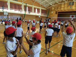| ☆平成30年11月6日(火) 〇ブロック別球球技大会がありました(5年生) ・植柳小と麦島小の体育館で、5年生の球技大会がありました。 ・植柳小55名2クラス、麦島小73名2クラス、高田小75名2クラス、八竜小13名1クラス、全部で32チームを作り、ソフトバレーボールの対戦をしました。 【5年2組の出発式】 ・5年2組は、麦島小へ行って試合をしました。校長先生の激励を受け、出発しました。 【植柳小体育館;試合についての話】 ・植柳会場には、麦島小、高田小、八竜小、植柳小5年2組が参加しました。 【試合開始!】 ・全部で17チーム。予選リーグで2試合、順位決定リーグで2試合、計4試合をしました。 【試合の様子】 ・ルールは、3~5回での返球となっていて、たくさんの友達がボールを触れるようになっていました。 【植柳小5年1組】 ・試合に勝って、みんなで大喜びでした。 【5年1組の黒板】 ・子供たちの意気込みが、教室の黒板に書かれていました。「仲間と勝利をつかみとろう」「みんなで楽しもう!」「ちがう小学校の子どもと仲良くなろう!」など、お互いの交流を深めあおうと思う気持ちが素敵でした。 〇いずかし給食がありました(1年生と6年生) ・2回目のいずかし給食がありました。1年生は、昨日のお弁当の日に、予行練習をしていたので、スムーズな会食ができたようでした。 【いずかしの森にて】 ・毎日天気が良く、1年生は暑さ対策に、黄色い帽子をかぶりました。 【6年生と1年生】 ・どんなお話をしたのかな? 【いずかし給食の様子】 ・準備は大変ですが、心に残る会食ができました。自然豊かな植柳小だからできる特別な給食でした。 |