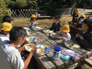 | ☆平成30年11月8日(木) 〇今月(11月)の言葉 ・5年2組の担任が、中学校時代に出会われた恩師の言葉です。 「まず やってみること」 【玄関にある案内版】 〇いずかし給食(6年2組と1年2組) ・4回目のいずかし給食がありました。今日も晴天でした。 【仲良く、おいしく食べました】 【9人の大人数で食べました】 ★「いずかし交流給食」は、来週2回で終了です。来種は、地域の方をお招きして、3・4年生がいっしょに食べます。おまちしております!! |