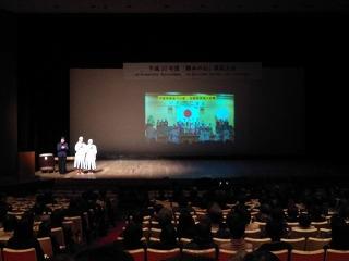 宝暦萩原堤や稲津弥右衛門について、広いステージの上で堂々と発表しました。
