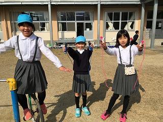 3年生の女の子が、一輪車となわとびの練習をしていました。