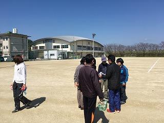 運動場にラインを引き、駐車場をつくりました。