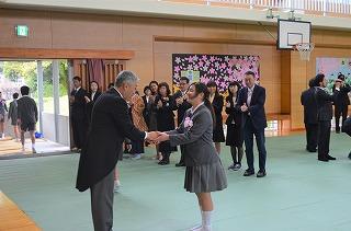校長先生と握手。
