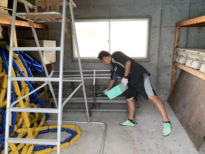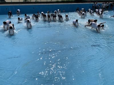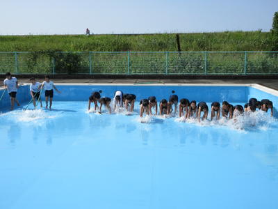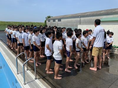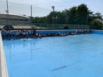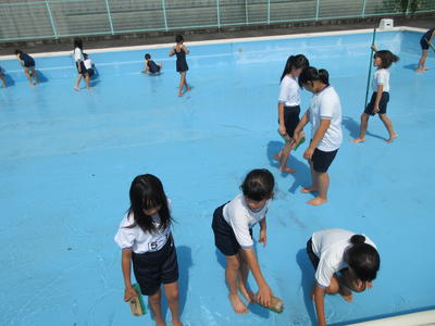 5年女子が小プール、5年男子と6年生が大プールのそうじをしました。