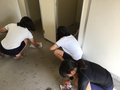 トイレはとても汚れていたので雑巾で磨きました。更衣室もピカピカにしてくれました。