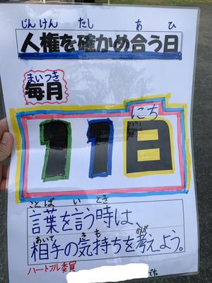 〇今日は人権を確かめ合う日だったので、ハートフル委員会が自作のポスターを持ってあいさつ運動をしました。